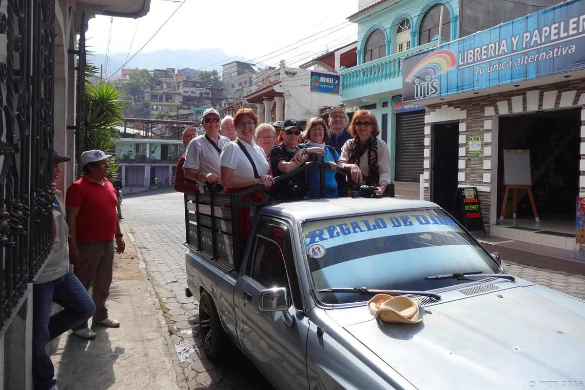 – Cała grupa załadowała się na stojąco na ładownię pickupa i objechaliśmy miasteczko w Gwatemali.