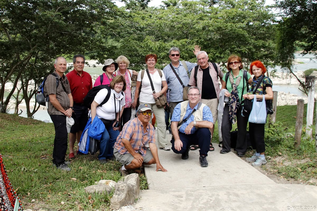 – Z Meksyku do Gwatemali płynęliśmy łodziami ok 30 min rzeką i … wysiedliśmy w dzikim miejscu, na piachy, pod górkę. Jedynie nowa przewodniczka czekała na nas na kamieniu. Walizki nam tubylcy donieśli do autobusu, który dowiózł nas paręset metrów do baraku – to był punkt graniczny.