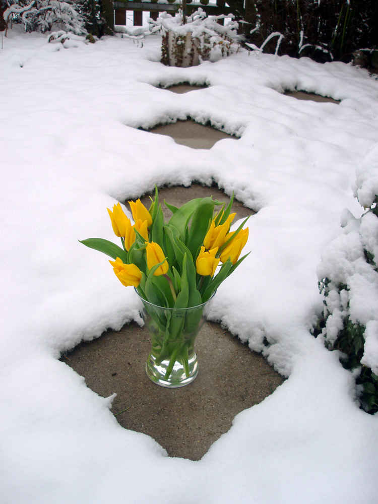A bukiecik wiosennych tulipanów – luksus od Aldiego, za całe 1,99 Euro – pocieszy oko i oszuka główkę.