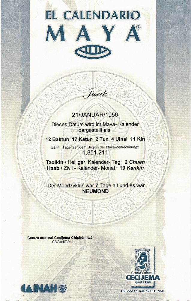 Na zdjęciach nasze daty urodzenia, według kalendarza Majów – taka sobie pamiątka z Jukatanu. Poszukaj różnice 🙂