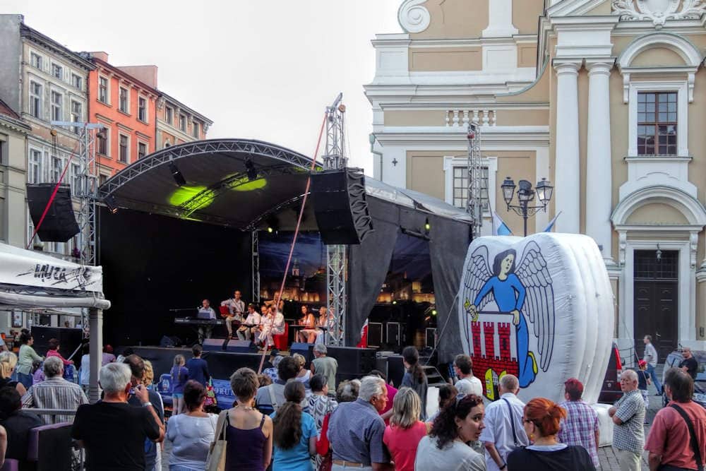 Toruń oferował (chyba specjalnie dla nas) Dni Torunia i Noc Świętojańską. Słuchaliśmy na rynku muzyki Piwnicy pod Baranami i Grechuty – nasze młodzieńcze lata, aż się zrobiło nostalgicznie i ckliwie… Kupiliśmy fajne rzeczy na stoiskach: drewniane łyżki do woka dla sąsiada (za „szczekanie” w domu), sobie drewniane talerze, bo bardzo nam się podobał pomysł tak serwowanego grillowanego mięsa, nowe portmonetki, dla mnie chustę z jedwabiu i filcu – jeszcze nie wiem, gdzie ją ubiorę, ale jest czymś zupełnie wymyślnym i oscypka.