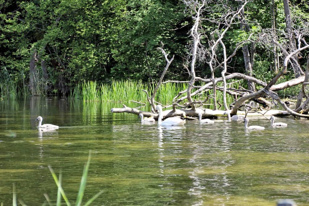 I wycieczkowy dzień sobie zrobiliśmy, z kuzynką, na Krutyni. Słoneczny dzień, ptasi świat, piękne widoki cichej mazurskiej rzeczki. Jest podobno najczystsza w Europie i łabędzie mają nawet do 13 brzydkich kaczątek – siedem sami widzieliśmy. Widzieliśmy też pierwszy raz gągoły – kaczki, które wylęgują wysoko na drzewie i zrzucają pisklęta do 20 metrów na dół, potem zbierają je do kupki i wędrują rządkiem do wody, widzieliśmy to kiedyś na filmie.
